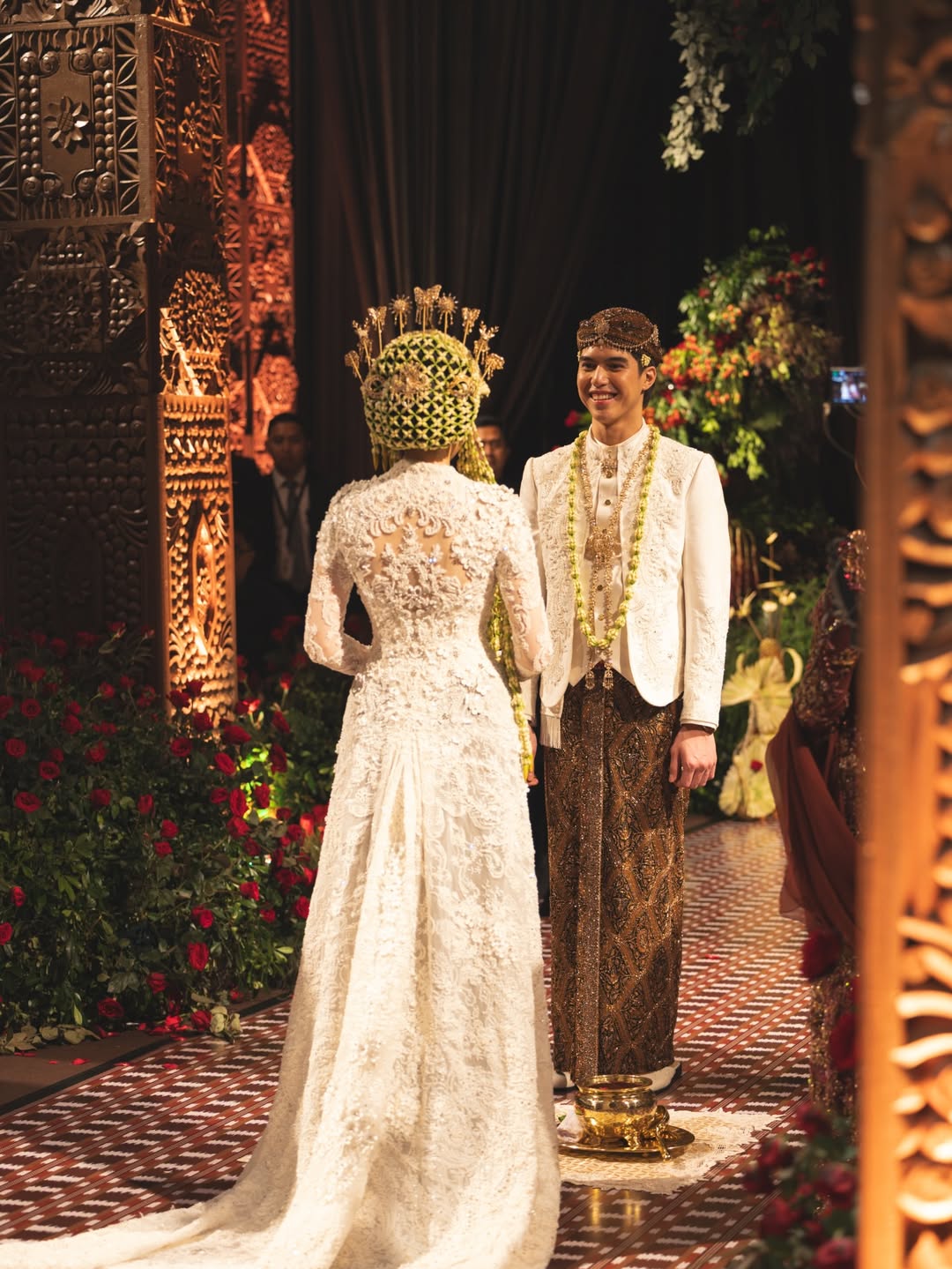 Pada prosesi akad, pasangan ini mengusung konsep adat Jawa yang kental dengan nuansa sakral dan penuh makna. Syifa Hadju tampil memukau dalam kebaya putih klasik karya desainer Vera Anggraini, dipadukan dengan riasan paes dan sanggul tradisional yang memperkuat identitas budaya Jawa.